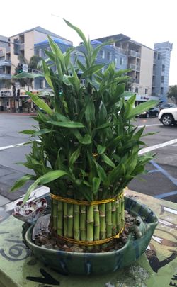 Big Chinese 5 tee lucky bamboo with hands made clay pot And with flowers and 2 frogs$60San Diego, CA
