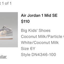 Jordan 1 Mid SE Coconut Milk Particle Grey (GS)$100San Diego, CA