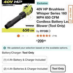 Ryobi 40v Leaf Blower Tool Only$160Lincoln Acres, CA
