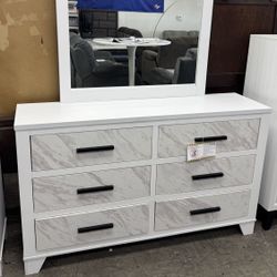 BRAND NEW White Dresser, 6 Drawer, Marble Design, Mirror $480Escondido, CA