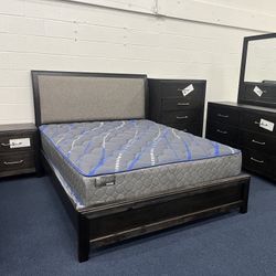Queen Gray Bedroom Set ( Bed Frame, Dresser, Mirror And One Nightstand) $799San Diego, CA