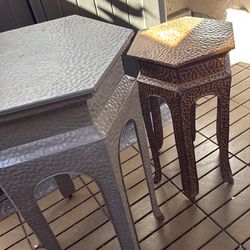 Two outdoor tin decorative planter stands$40San Diego, CA