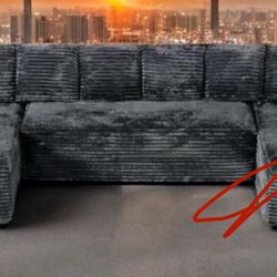 Brand New Gray Jumbo Fur-Like Corduroy U Sectional With Pullout Sofa Bed And 2 Storage Chaises$899San Diego, CA