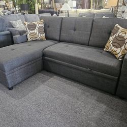 Brand New 99" x 61" Gray Linen Sectional With Sofa Pullout And Storage Chaise$599San Diego, CA