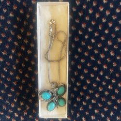 Chic Silver Turquoise Clover Motifs Necklace 21"$350San Diego, CA