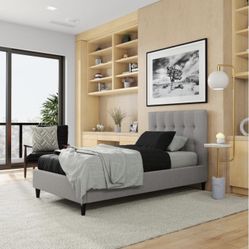Brand Gray Linen Twin Size Platform Bedframe $160San Diego, CA