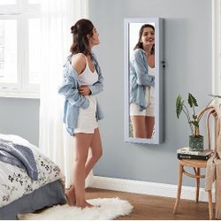 Mirror Jewelry Cabinet, 47.2-Inch Tall Lockable Wall or Door Mounted Jewelry Armoire Organizer with Mirror, 2 Drawers, 3.9 x 14.6 x 47.2 Inches, Gray $60Santa Ana, CA