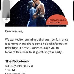The Notebook Musical Great Seats 150$ For Both $150Costa Mesa, CA