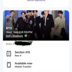 BTS KPOP WORLD TOUR - SEP 1 - SOFI STADIUM$240Los Angeles, CA