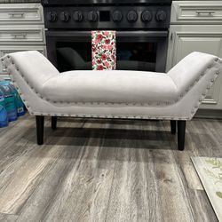 Beautiful Light Gray Suede Bench With Nail Button Trim And Wooden Legs$120Long Beach, CA