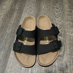Stylish Birkenstock Arizona sandals. Black straps with adjustable buckles. Has classic cork footbed. Size EU 42, fits men's US 9 or women's US 11. Sup$75Lakewood, CA