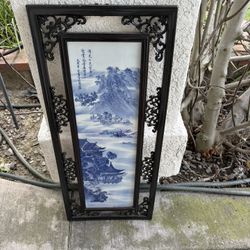 Chinese Blue & White Porcelain Landscape Plaque w/ Calligraphy in Openwork Wood Frame$99City Of Industry, CA