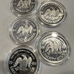 5x 1 Oz Fine Silver Rounds Liberty Silver Vintage 1986$470Hawthorne, CA