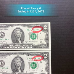 Fun Set and Fancy Numbers of New $2 Dollar Bills$16Diamond Bar, CA
