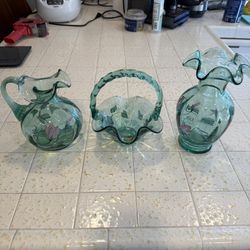 Fenton Green Glass Hand Painted Vase bowl carafe$40Huntington Beach, CA