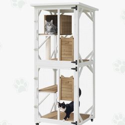 70.5" Tall Wooden Catio Outdoor Cat Enclosure, Gray Cat House Large Solid Wood Cage Playpen with 6 Jumping Platforms & 2 Napping Houses, Movable tarp $220City Of Industry, CA