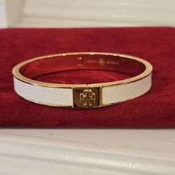 Brand New White Tory Burch Kira Enamel Hinged Bangle Bracelet with logo 18K-Gold-Plated$125Beverly Hills, CA