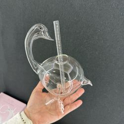 New Home Collection Figural Shape 10oz Swan Cocktail Glass w/ Glass Straw NIB$24Rosemead, CA