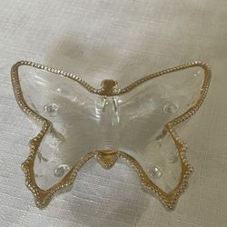 1950s-60s Clear glass Jeannette Glass Company butterfly dish with gold trim.$30Buena Park, CA