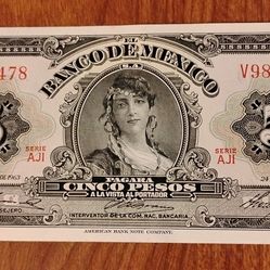 Mexican Mexico 1963 Vintage 5 Pesos Bill Banknote Currency $20Glendale, CA