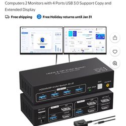 Port Dual Monitor DisplayPort HDMI KVM Switch 8K @60Hz, 4K @120Hz, USB 3.0 DP+HDMI KVM Switcher 2 in 2 Out for 2 Computers 2 Monitors with 4 Ports USB$30Lynwood, CA