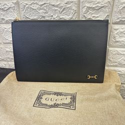 GUCCI 700524 Horsebit Black Leather Gold Tone Hardware Clutch Bag$650Torrance, CA