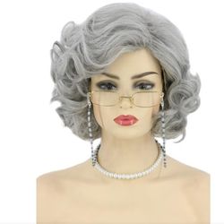Old Lady Wig and Accessories 5pcs Set Granny Costume Wig Grandma wig Halloween Party Wigs (Grey)$20Pico Rivera, CA