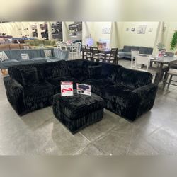 Black jumbo corduroy sectional sofa with ottoman $529Downey, CA