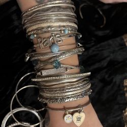 Insane set of Vintage early 2000s y2k silver charm bangles with blue beads and juicy$30Whittier, CA
