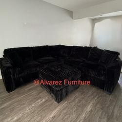 Stylish Black Sectional Sofa With Ottoman Fur-Like Jumbo Corduroy New$529Downey, CA