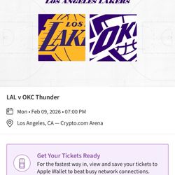 *2* Lakers vs Thunder Tickets $300$300Los Angeles, CA