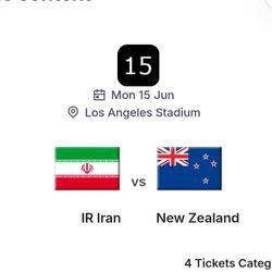 World Cup, 4 Tickets Iran Vs New Zealand, Cat 1 $720Lakewood, CA