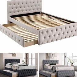 Full/Twin Gray Frenchi Tufted Trundle Beds W. Ortho Mattresses Included$479Glendale, CA