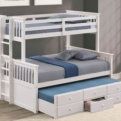 Brand New White Twin Over Full Bunk Bed with Trundle Bed + Drawers$699El Monte, CA