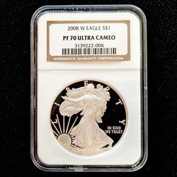 2008-W American Eagle 1oz fine .999 pure silver PF70 Ultra Cameo proof $1 coin$175San Mateo, CA