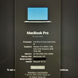 Apple Macbook Pro i9 16gb Ram 500gb SSD Drive 8-Core 16" Screen $420Danville, CA