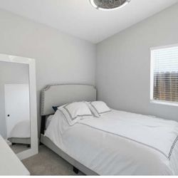Queen upholstered bed frame and mattress$500Modesto, CA