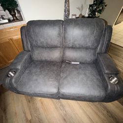 Dark Gray Reclining Loveseat w Cup Holders$200Manteca, CA