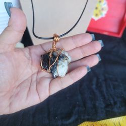 Handcrafted Copper Wrapped Black And White Moonstone Pendant Necklace$20Manteca, CA