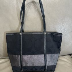Coach Black Gunmetal Signature Stripe Tote Handbag Purse$25Lodi, CA