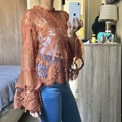 Burnt orange Sheer Lace blouse$35Modesto, CA
