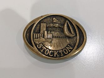 Vintage 1980s Stockton California Solid Brass Belt Buckle Siskiyou 1852 USA$45Stockton, CA