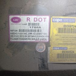 2012 Honda Civic Fender Liner New $30Stockton, CA