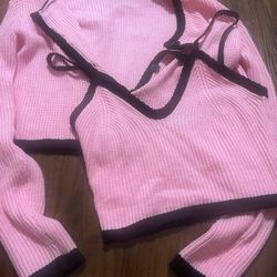 Shein Women’s Pink Cardigan Set With Black Trim Size Medium$4Galt, CA