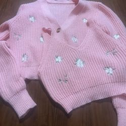 Shein Women’s Pink Cardigan Set With Flower Designs Size Small$6Galt, CA
