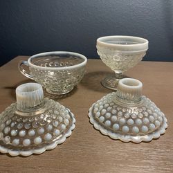 Vintage Hobnail Moonstone Glass Lot – Candle Holders, Dish & Cup$45Modesto, CA