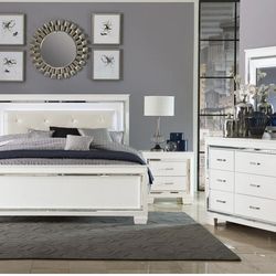 White 4 Pc QUEEN SET . BEDFRAME,NIGHTSTAND,DRESSER,MIRROR$599Modesto, CA