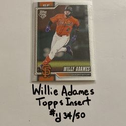 Willy Adames San Francisco Giants Shortstop Topps Short Print Insert Card. #’d 34/50. $30San Jose, CA