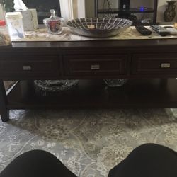 Very nice coffee table with three draws$60Newark, CA