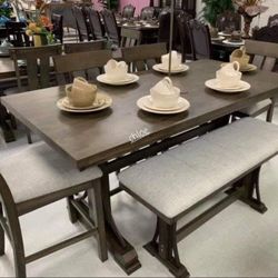 Quincy 6 Pcs Dining Room Set Dining Table 4 Chairs and Bench $999Milpitas, CA